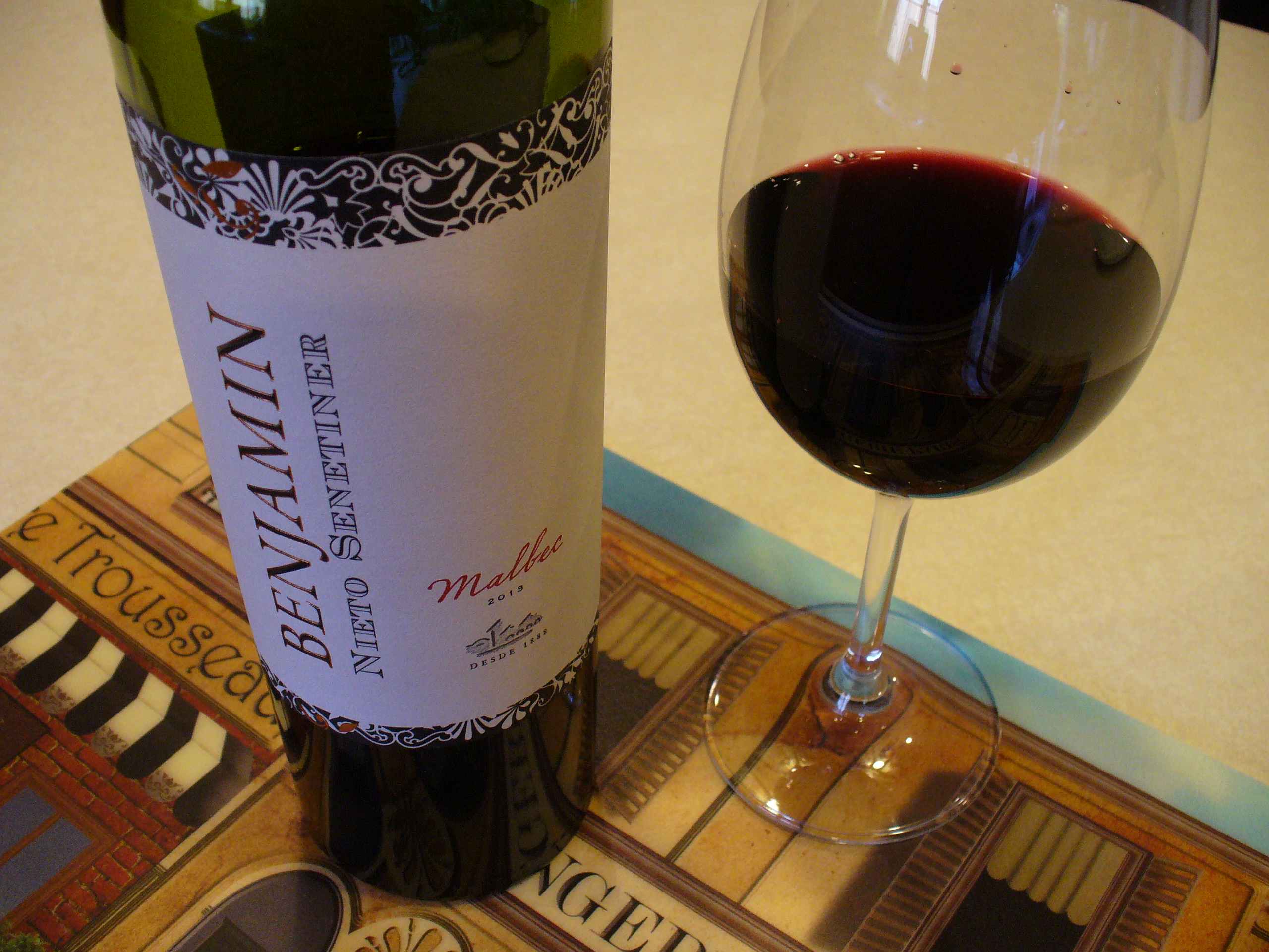 We are excited to try a new Malbec, 2013 Benjamin Nieto Senetiner from Mendoza, Argentina, with a hanger steak on a nice crusty Calandra roll for dinner. As the splash of deep-hued purple color swirls around my glass, I detect a woodsy aroma mixed with plum. From the color and nose, I’m expecting a bold, full-bodied taste. My expectations are dashed as I begin sipping. While attractive on the nose, the wine is petite and pale on the palate. The tiny flavor yields a light finish. We try allowing some time for more aeration, but sadly, it is what it is. Maybe it would have tasted better had it aged longer in the bottle? Overall, Benjamin seems on the light side for a Malbec. Cost about $12.