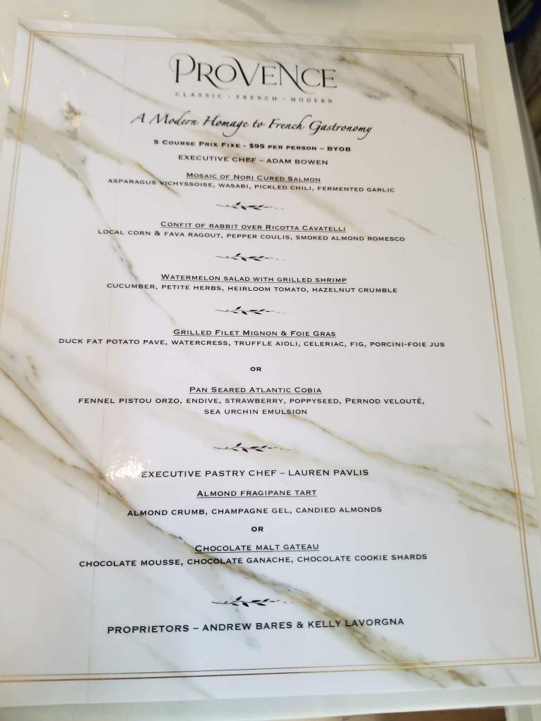 The idea of set menu where there are few choices to be made may not be to everyone’s liking. It takes daring to be willing to try whatever food is set before you. But we were happy to try things like rabbit and foie gras even though they aren’t fare we typically eat. We’re so glad that Provence has brought the sophistication and quality of New York City’s tasting menu restaurant scene right here to Cape May County, New Jersey.