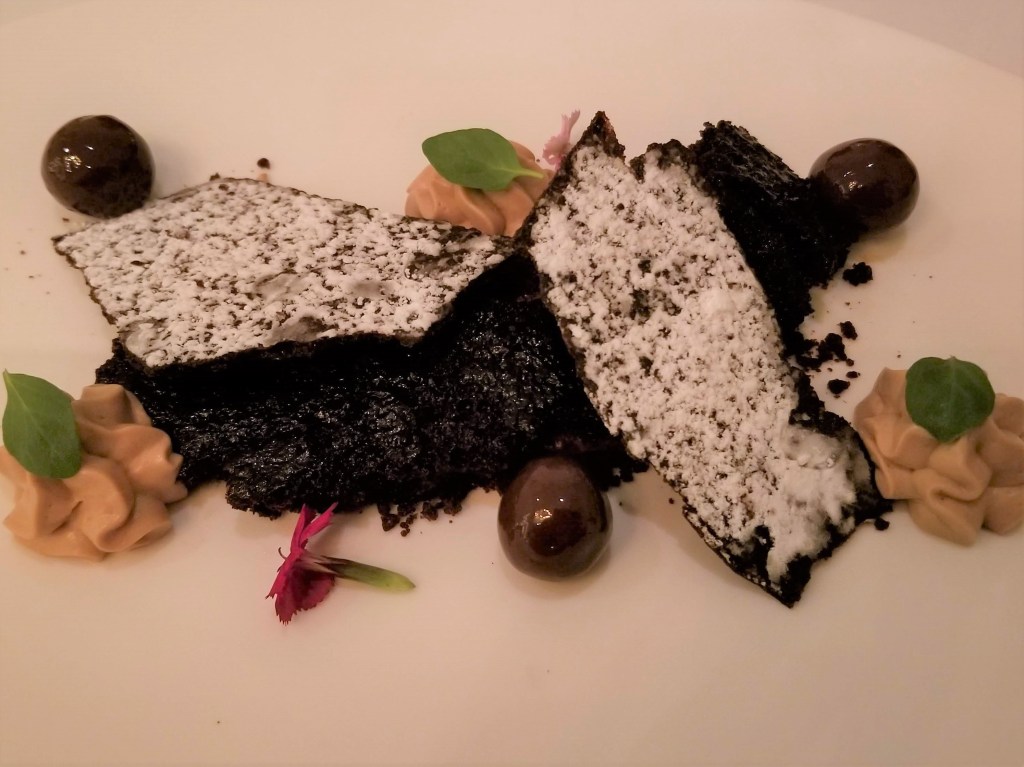 Our waiter presented and explained each artfully plated dish and was attentive to timing, allowing us to leisurely enjoy our food and wine before moving on to the next course. The portion size of each appetizer was enough to savor its goodness without feeling over-stuffed. The filet mignon entrée was large enough that I wrapped a piece to take home, saving room for the decadent chocolate dessert.