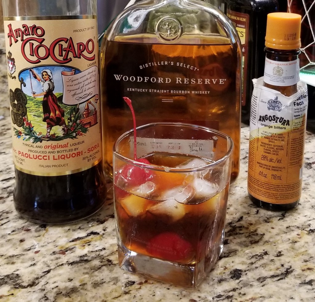 The Amaro Manhattan substitutes sweet vermouth with Amaro. This is a great variation if you’re not a fan of sweet vermouth. Amaro is a distilled Italian liqueur made with a proprietary blend of botanicals and consumed as an aperitif/digestif. The Amaro CioCiaro that we are using has aromas of campfire, cedar, and wood smoke. The campfire theme follows through on the palate with the flavor of barbecue charred meat. Hints of lemon rind, licorice, and coffee are revealed on the finish. The amount of Amaro can be adjusted for different brands and individual tastes.