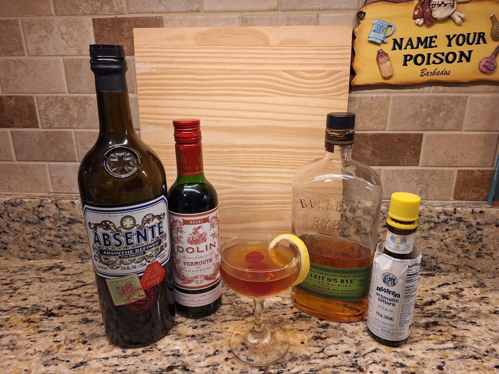 1. Rinse the inside of a chilled coup glass with a small amount of Absinthe and set aside.